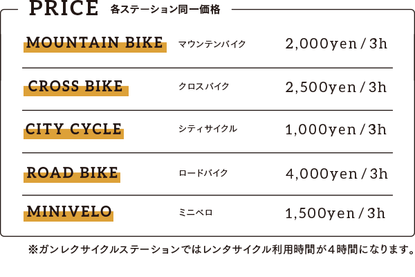 レンタサイクル利用時間は4時間です